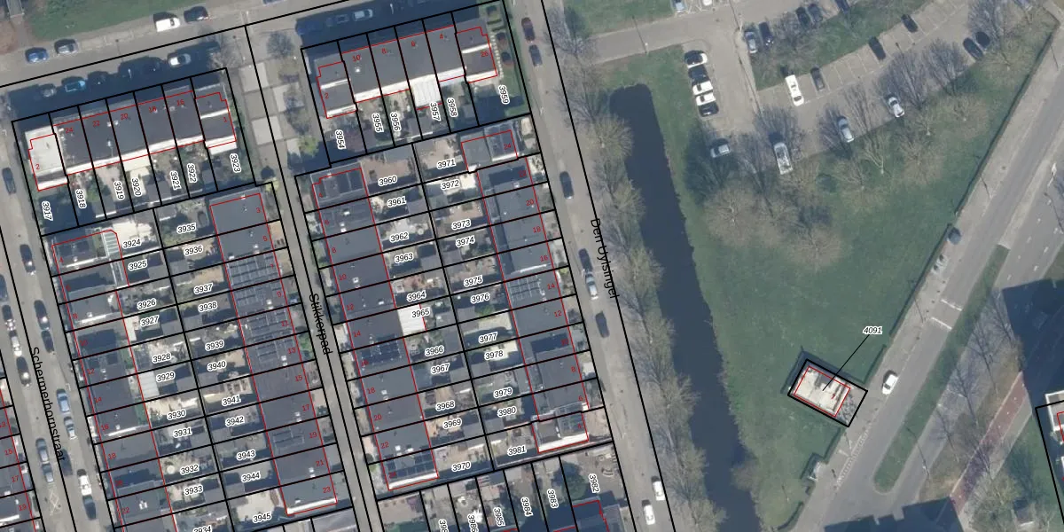Gebruik de zoekbalk of klik op een perceel voor informatie over de adressen binnen dit perceel.