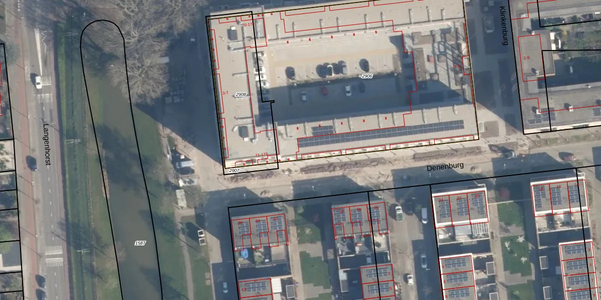 Het perceel waarop Denenburg 75 staat heeft een oppervlakte van 3457 m². Dit is een zeer groot perceel. De perceeloppervlakte wordt geregistreerd door het Kadaster. Gedetailleerde informatie over de maten van dit perceel kunt u vinden in het rapport Kadastrale kaart met maatvoering van Denenburg 75.