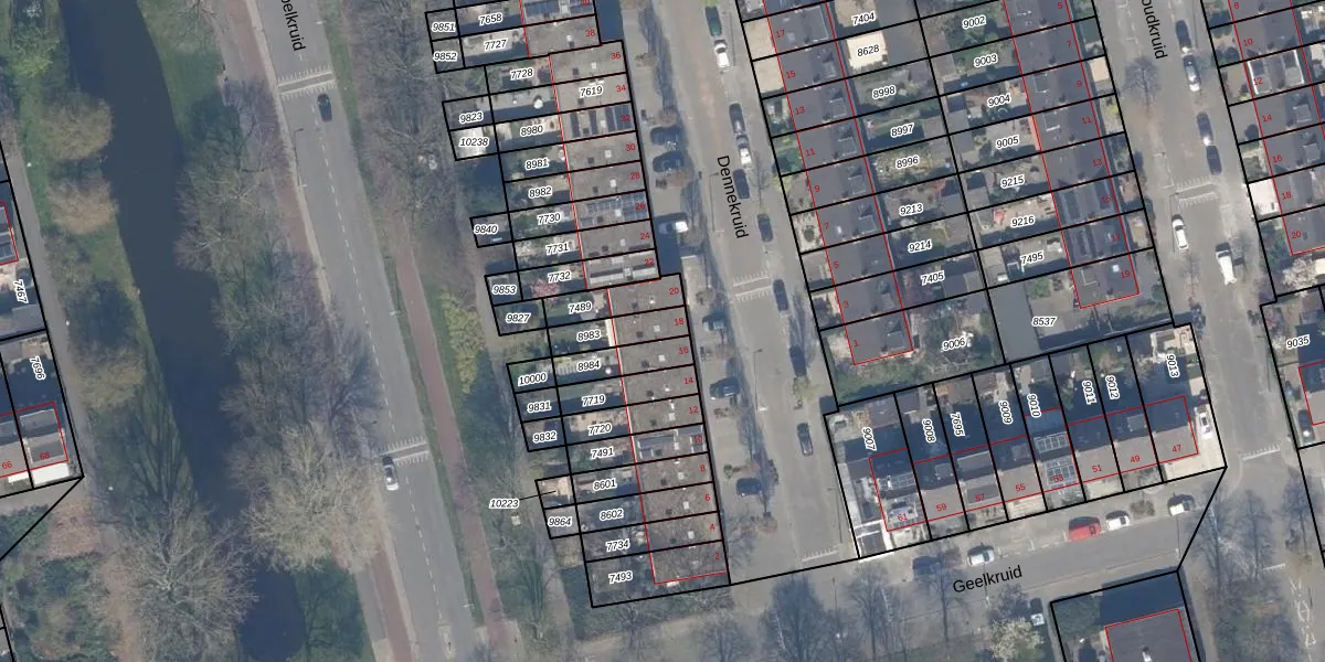 Het perceel waarop Dennekruid 18 staat heeft een oppervlakte van 95 m². Dit is een klein perceel. De perceeloppervlakte wordt geregistreerd door het Kadaster. Gedetailleerde informatie over de maten van dit perceel kunt u vinden in het rapport Kadastrale kaart met maatvoering van Dennekruid 18.