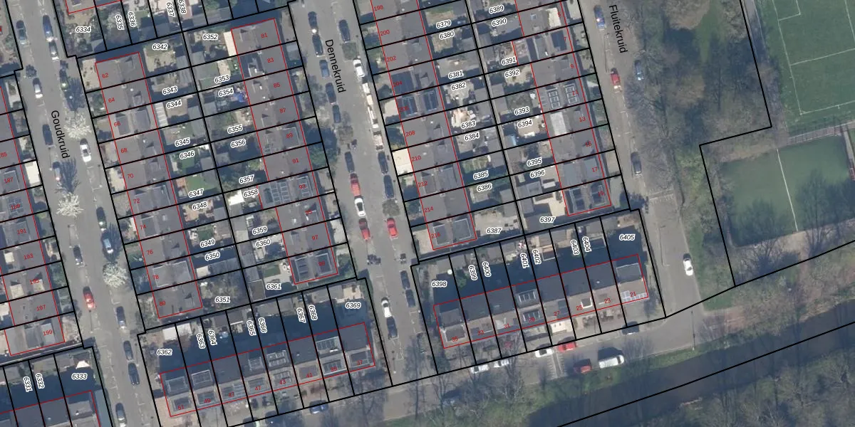 Het perceel waarop Dennekruid 214 staat heeft een oppervlakte van 156 m². Dit is een middelgroot perceel. De perceeloppervlakte wordt geregistreerd door het Kadaster. Gedetailleerde informatie over de maten van dit perceel kunt u vinden in het rapport Kadastrale kaart met maatvoering van Dennekruid 214.