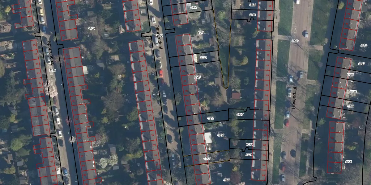 Dennendaal 48 is gelegen op kadastraal perceel RTD05V6045. Deze kadastrale aanduiding is uniek en wordt gebruikt door het Kadaster om eigendomsrechten en andere zakelijke rechten vast te leggen. Het perceel maakt onderdeel uit van de kadastrale gemeente Rotterdam.