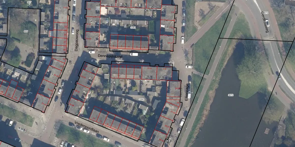 Het perceel waarop Dennepijlstaart 10 staat heeft een oppervlakte van 3320 m². Dit is een zeer groot perceel. De perceeloppervlakte wordt geregistreerd door het Kadaster. Gedetailleerde informatie over de maten van dit perceel kunt u vinden in het rapport Kadastrale kaart met maatvoering van Dennepijlstaart 10.