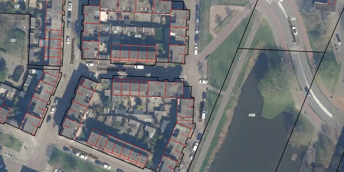 Het perceel waarop Dennepijlstaart 6 staat heeft een oppervlakte van 3320 m². Dit is een zeer groot perceel. De perceeloppervlakte wordt geregistreerd door het Kadaster. Gedetailleerde informatie over de maten van dit perceel kunt u vinden in het rapport Kadastrale kaart met maatvoering van Dennepijlstaart 6.