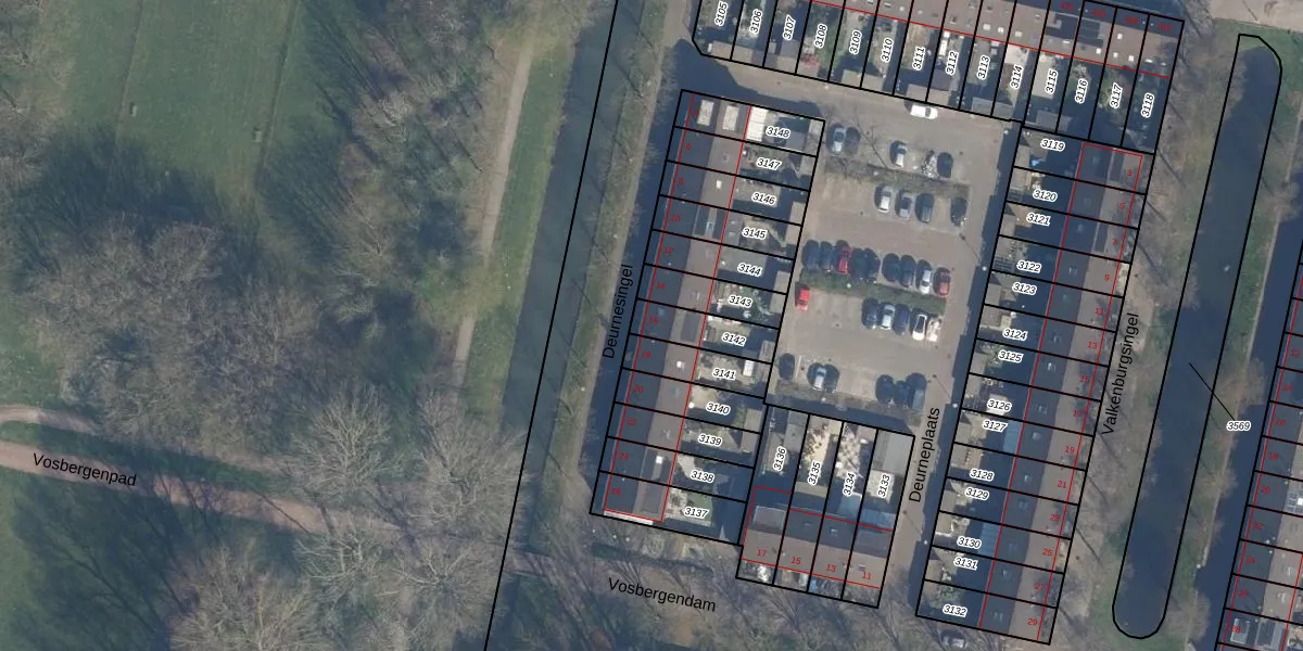 Gebruik de zoekbalk of klik op een perceel voor informatie over de adressen binnen dit perceel.