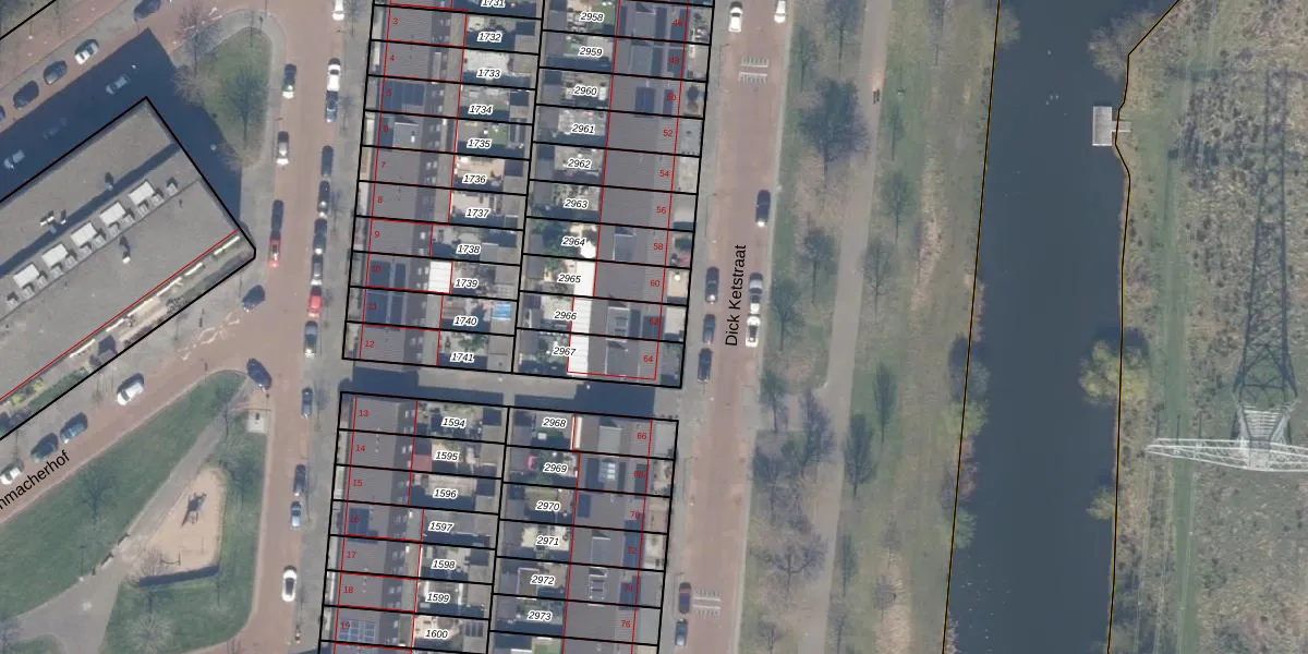 Het perceel waarop Dick Ketstraat 62 staat heeft een oppervlakte van 148 m². Dit is een middelgroot perceel. De perceeloppervlakte wordt geregistreerd door het Kadaster. Gedetailleerde informatie over de maten van dit perceel kunt u vinden in het rapport Kadastrale kaart met maatvoering van Dick Ketstraat 62.