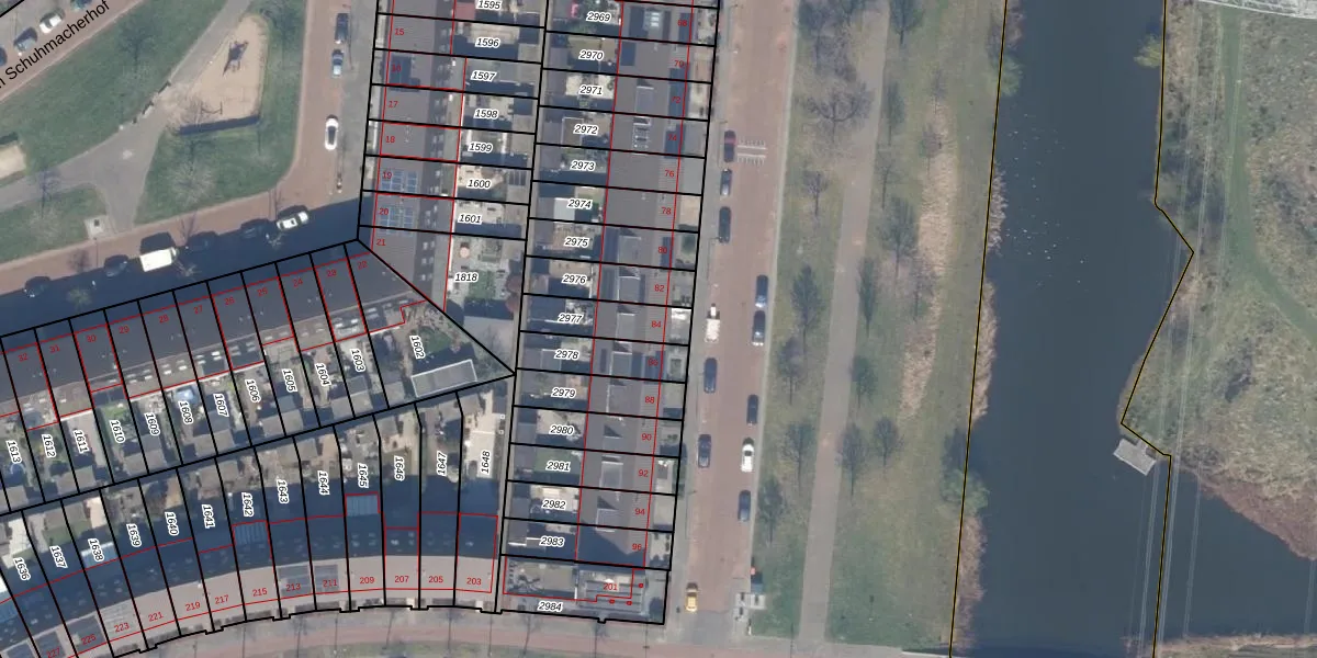 Gebruik de zoekbalk of klik op een perceel voor informatie over de adressen binnen dit perceel.