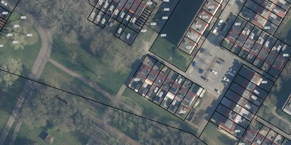 Gebruik de zoekbalk of klik op een perceel voor informatie over de adressen binnen dit perceel.