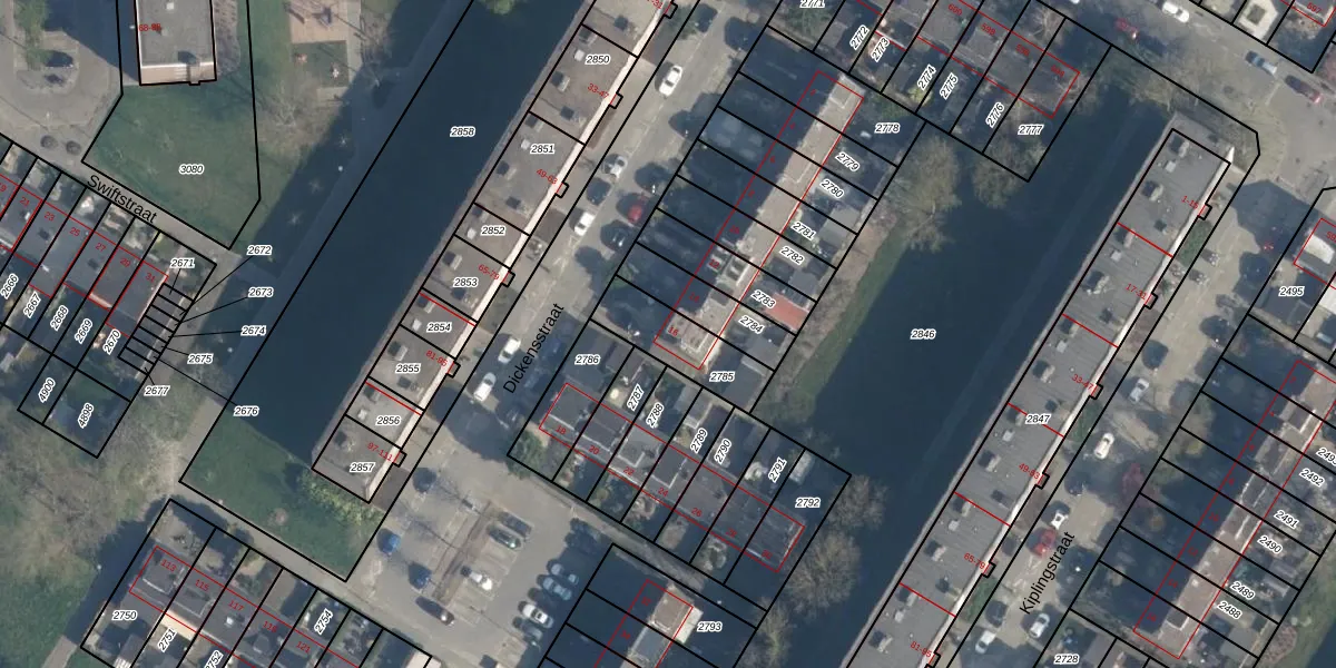Het perceel waarop Dickensstraat 16 staat heeft een oppervlakte van 225 m². Dit is een middelgroot perceel. De perceeloppervlakte wordt geregistreerd door het Kadaster. Gedetailleerde informatie over de maten van dit perceel kunt u vinden in het rapport Kadastrale kaart met maatvoering van Dickensstraat 16.