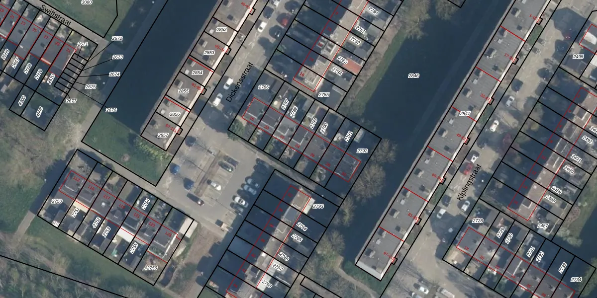 Het perceel waarop Dickensstraat 24 staat heeft een oppervlakte van 141 m². Dit is een middelgroot perceel. De perceeloppervlakte wordt geregistreerd door het Kadaster. Gedetailleerde informatie over de maten van dit perceel kunt u vinden in het rapport Kadastrale kaart met maatvoering van Dickensstraat 24.
