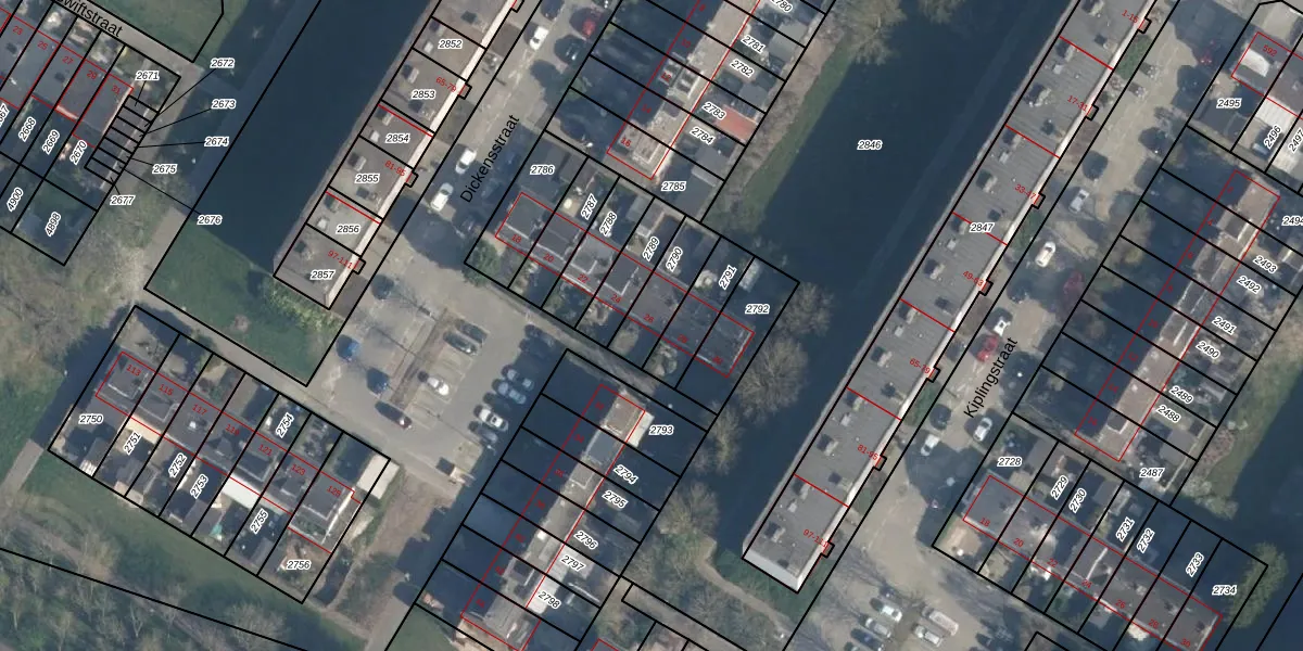 Gebruik de zoekbalk of klik op een perceel voor informatie over de adressen binnen dit perceel.