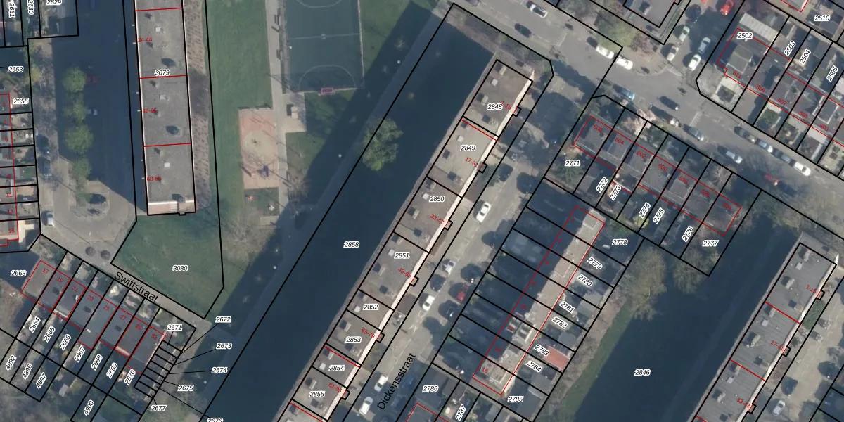 Dickensstraat 47 is gelegen op kadastraal perceel ISM01C2850. Deze kadastrale aanduiding is uniek en wordt gebruikt door het Kadaster om eigendomsrechten en andere zakelijke rechten vast te leggen. Het perceel maakt onderdeel uit van de kadastrale gemeente IJsselmonde.