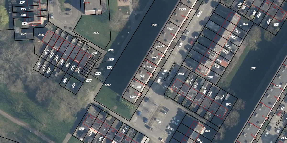 Het perceel waarop Dickensstraat 91 staat heeft een oppervlakte van 92 m². Dit is een klein perceel. De perceeloppervlakte wordt geregistreerd door het Kadaster. Gedetailleerde informatie over de maten van dit perceel kunt u vinden in het rapport Kadastrale kaart met maatvoering van Dickensstraat 91.