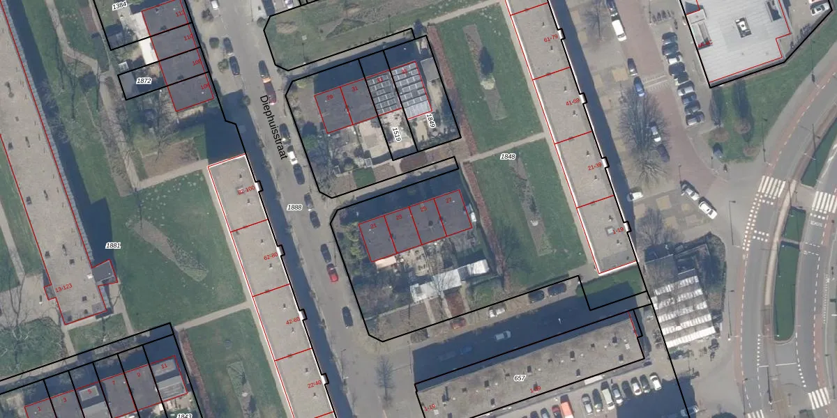 Het perceel waarop Diephuisstraat 25 staat heeft een oppervlakte van 4979 m². Dit is een zeer groot perceel. De perceeloppervlakte wordt geregistreerd door het Kadaster. Gedetailleerde informatie over de maten van dit perceel kunt u vinden in het rapport Kadastrale kaart met maatvoering van Diephuisstraat 25.