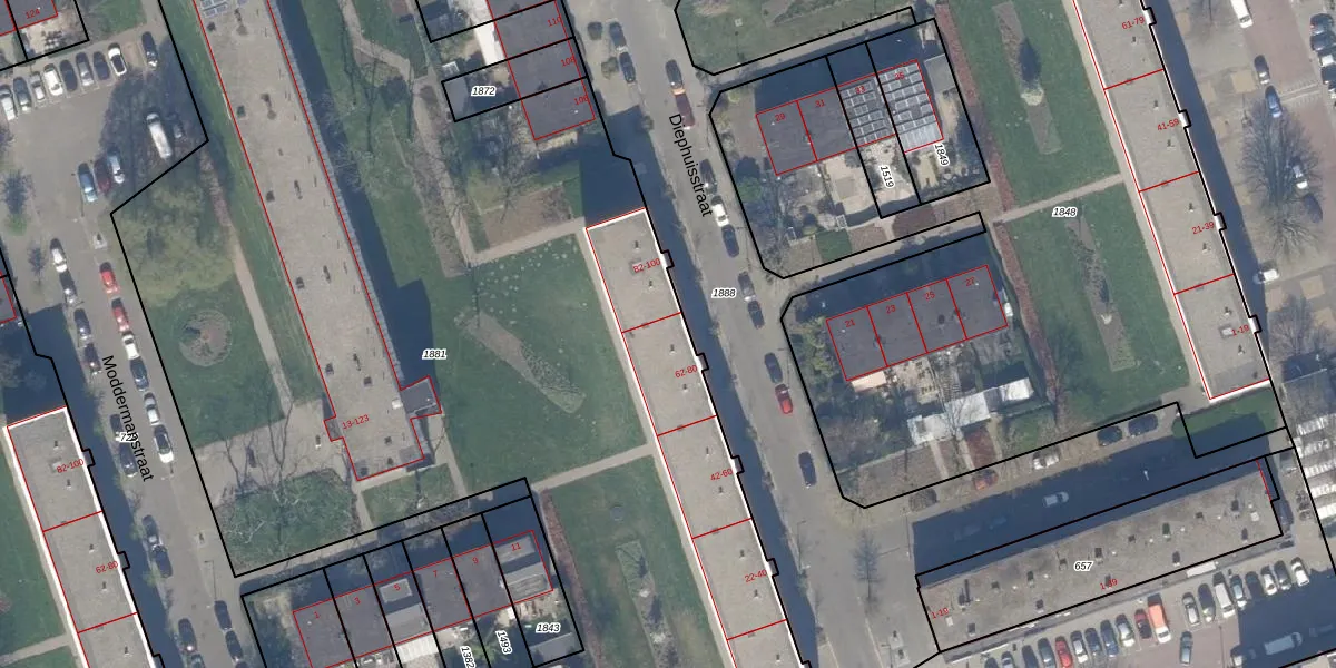 Het perceel waarop Diephuisstraat 80 staat heeft een oppervlakte van 9154 m². Dit is een zeer groot perceel. De perceeloppervlakte wordt geregistreerd door het Kadaster. Gedetailleerde informatie over de maten van dit perceel kunt u vinden in het rapport Kadastrale kaart met maatvoering van Diephuisstraat 80.