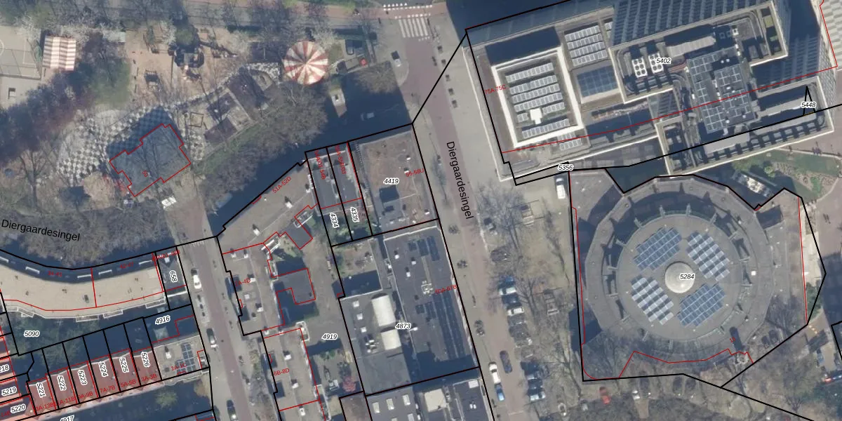 Het perceel waarop Diergaardesingel 58-J staat heeft een oppervlakte van 375 m². Dit is een groot perceel. De perceeloppervlakte wordt geregistreerd door het Kadaster. Gedetailleerde informatie over de maten van dit perceel kunt u vinden in het rapport Kadastrale kaart met maatvoering van Diergaardesingel 58-J.