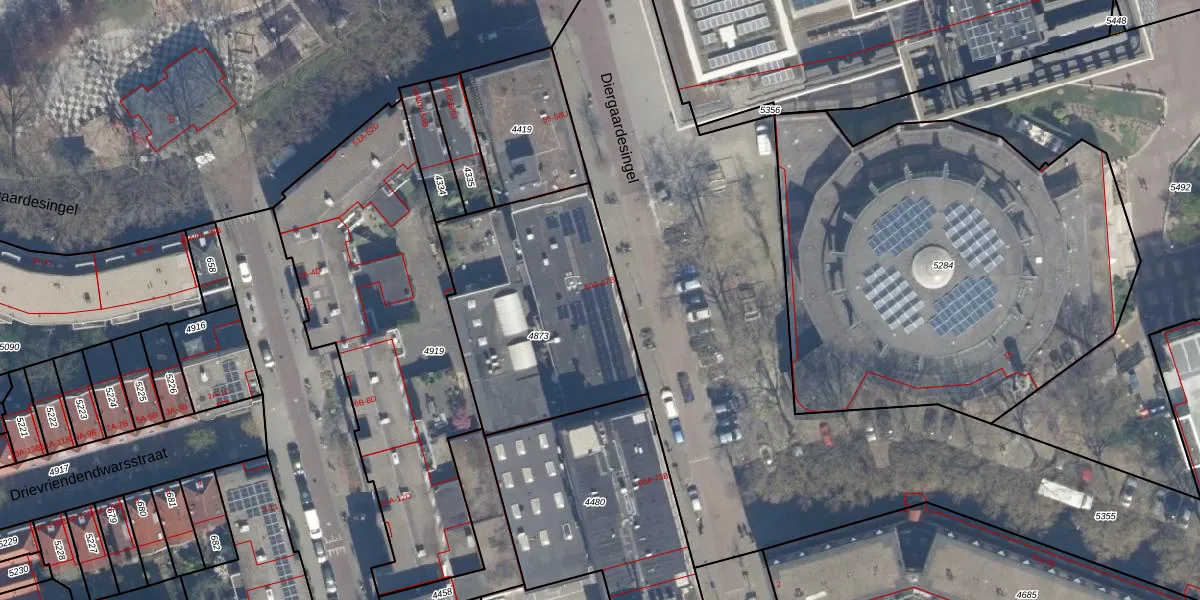 Het perceel waarop Diergaardesingel 64 staat heeft een oppervlakte van 1004 m². Dit is een zeer groot perceel. De perceeloppervlakte wordt geregistreerd door het Kadaster. Gedetailleerde informatie over de maten van dit perceel kunt u vinden in het rapport Kadastrale kaart met maatvoering van Diergaardesingel 64.