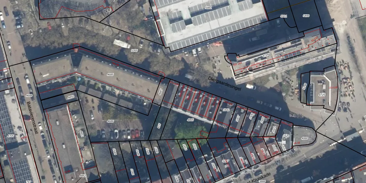 Diergaardesingel 88-A-01 is gelegen op kadastraal perceel RTD06S4865. Deze kadastrale aanduiding is uniek en wordt gebruikt door het Kadaster om eigendomsrechten en andere zakelijke rechten vast te leggen. Het perceel maakt onderdeel uit van de kadastrale gemeente Rotterdam.