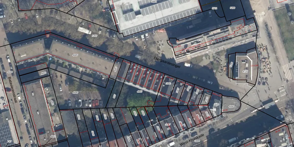Diergaardesingel 90-B is gelegen op kadastraal perceel RTD06S4865. Deze kadastrale aanduiding is uniek en wordt gebruikt door het Kadaster om eigendomsrechten en andere zakelijke rechten vast te leggen. Het perceel maakt onderdeel uit van de kadastrale gemeente Rotterdam.