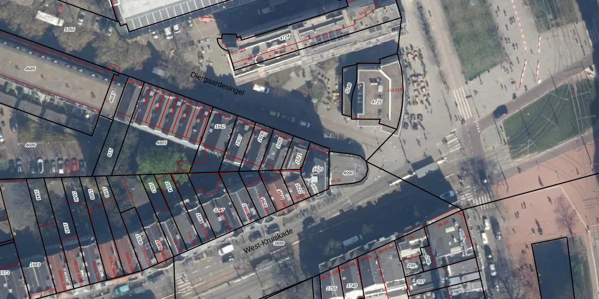 Diergaardesingel 97 is gelegen op kadastraal perceel RTD06S1621. Deze kadastrale aanduiding is uniek en wordt gebruikt door het Kadaster om eigendomsrechten en andere zakelijke rechten vast te leggen. Het perceel maakt onderdeel uit van de kadastrale gemeente Rotterdam.