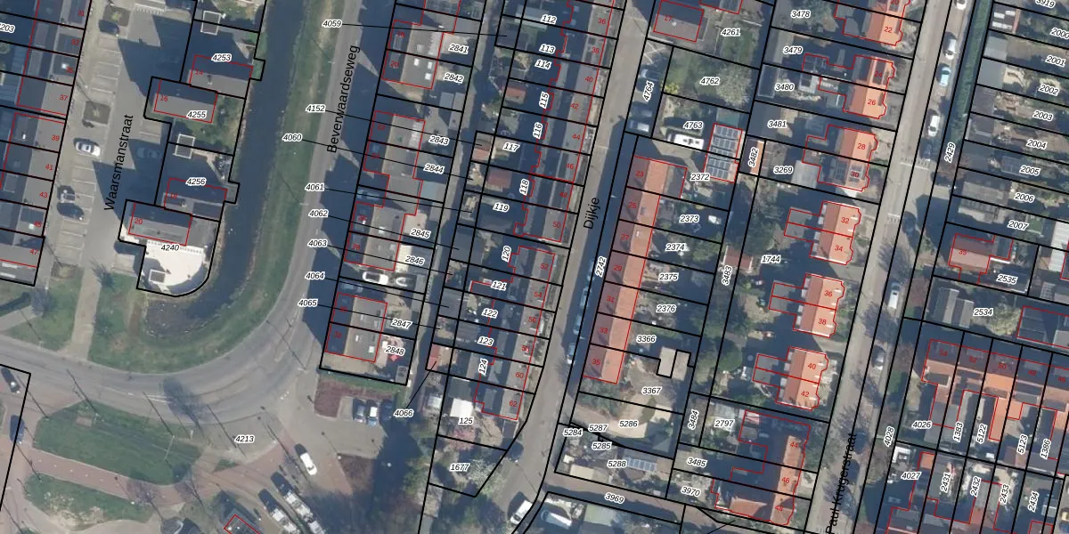 Gebruik de zoekbalk of klik op een perceel voor informatie over de adressen binnen dit perceel.