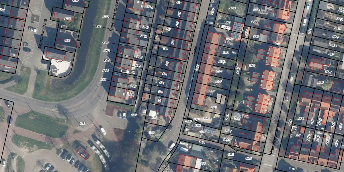 Het perceel waarop Dijkje 56 staat heeft een oppervlakte van 89 m². Dit is een klein perceel. De perceeloppervlakte wordt geregistreerd door het Kadaster. Gedetailleerde informatie over de maten van dit perceel kunt u vinden in het rapport Kadastrale kaart met maatvoering van Dijkje 56.
