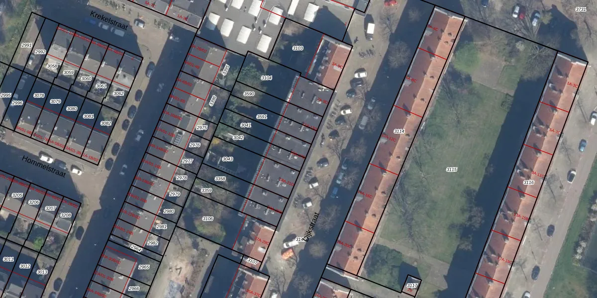Dijkstraat 15-B is gelegen op kadastraal perceel KLG00F3041. Deze kadastrale aanduiding is uniek en wordt gebruikt door het Kadaster om eigendomsrechten en andere zakelijke rechten vast te leggen. Het perceel maakt onderdeel uit van de kadastrale gemeente Kralingen.