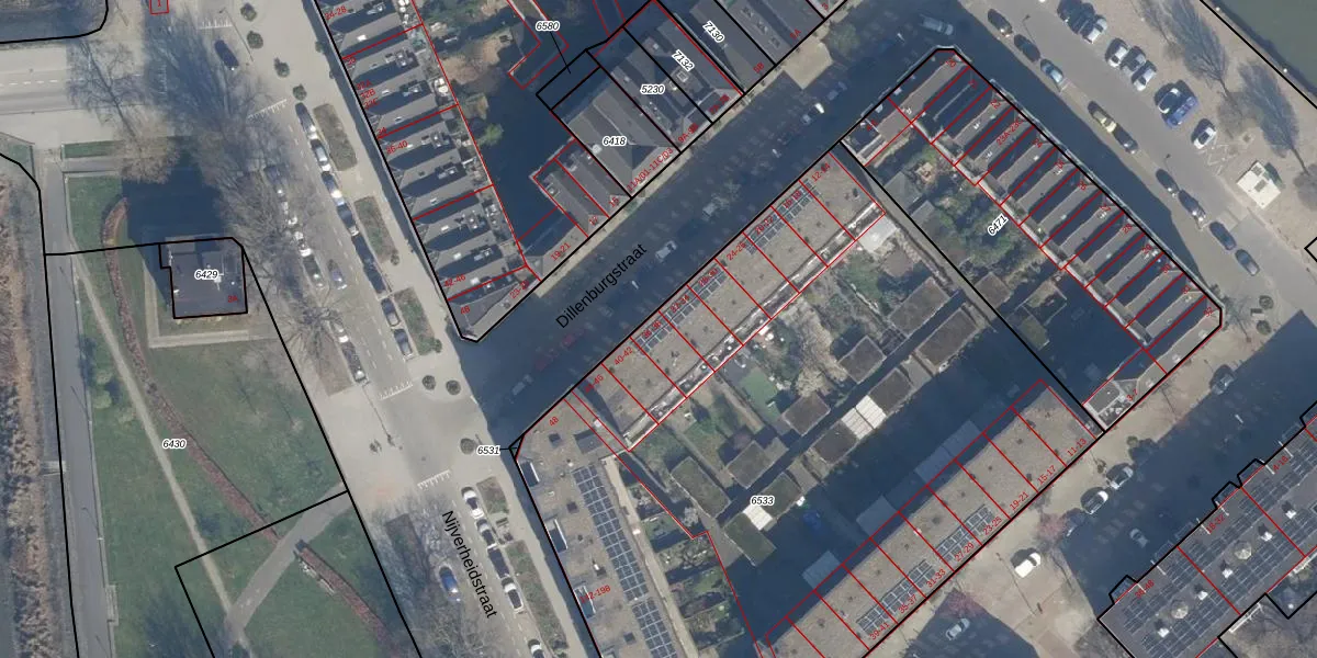 Het perceel waarop Dillenburgstraat 36 staat heeft een oppervlakte van 4786 m². Dit is een zeer groot perceel. De perceeloppervlakte wordt geregistreerd door het Kadaster. Gedetailleerde informatie over de maten van dit perceel kunt u vinden in het rapport Kadastrale kaart met maatvoering van Dillenburgstraat 36.
