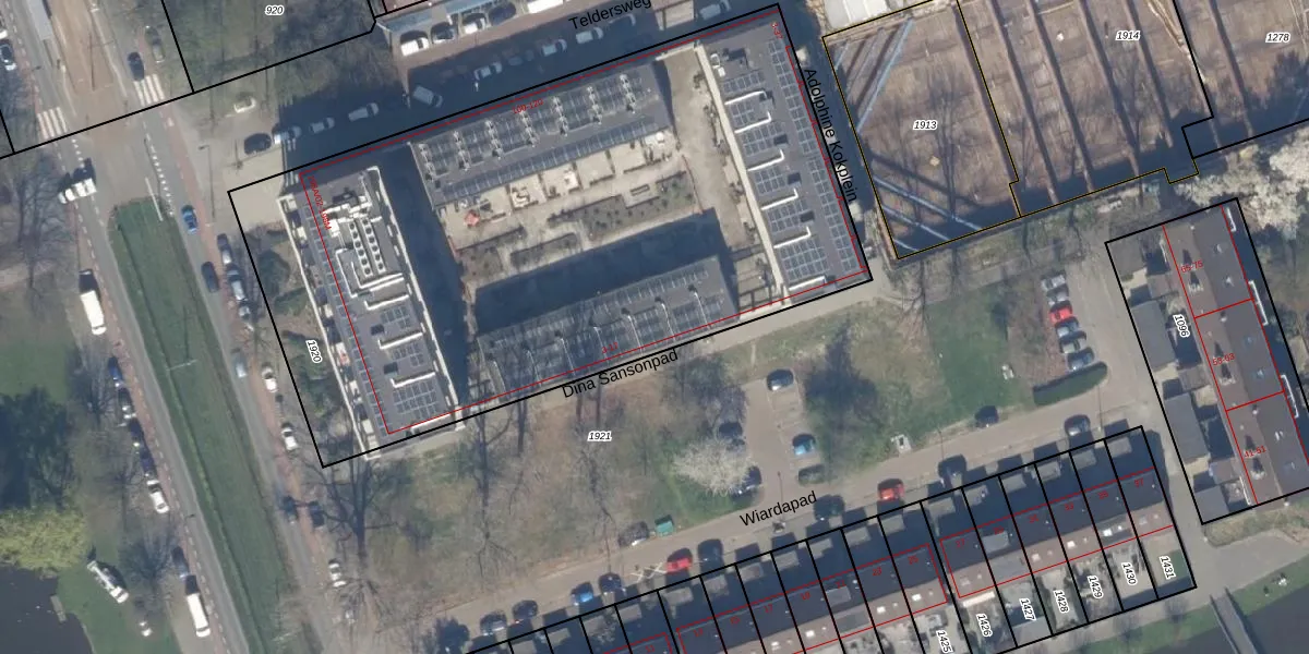 Het perceel waarop Dina Sansonpad 13 staat heeft een oppervlakte van 3951 m². Dit is een zeer groot perceel. De perceeloppervlakte wordt geregistreerd door het Kadaster. Gedetailleerde informatie over de maten van dit perceel kunt u vinden in het rapport Kadastrale kaart met maatvoering van Dina Sansonpad 13.