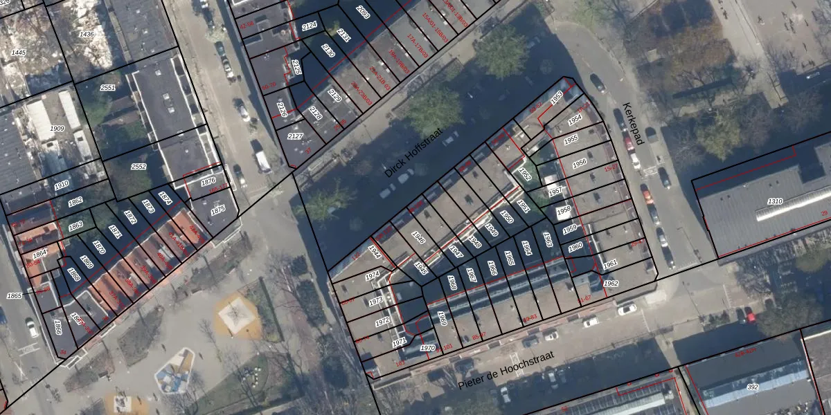 Het perceel waarop Dirck Hoffstraat 90 staat heeft een oppervlakte van 97 m². Dit is een klein perceel. De perceeloppervlakte wordt geregistreerd door het Kadaster. Gedetailleerde informatie over de maten van dit perceel kunt u vinden in het rapport Kadastrale kaart met maatvoering van Dirck Hoffstraat 90.