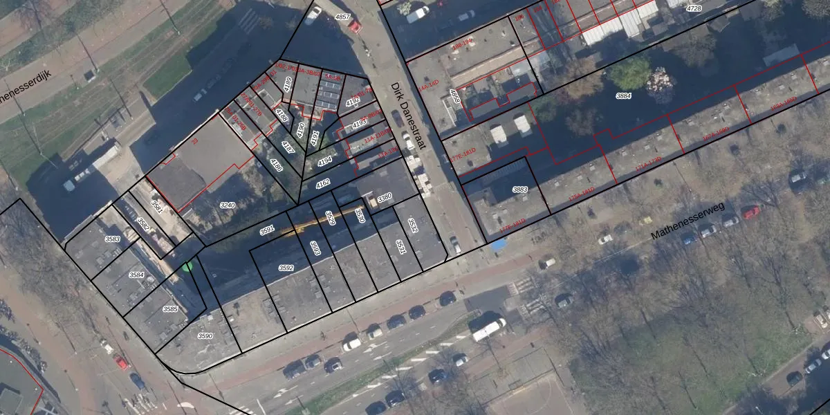 Dirk Danestraat 25 is gelegen op kadastraal perceel DHV00H3532. Deze kadastrale aanduiding is uniek en wordt gebruikt door het Kadaster om eigendomsrechten en andere zakelijke rechten vast te leggen. Het perceel maakt onderdeel uit van de kadastrale gemeente Delfshaven.