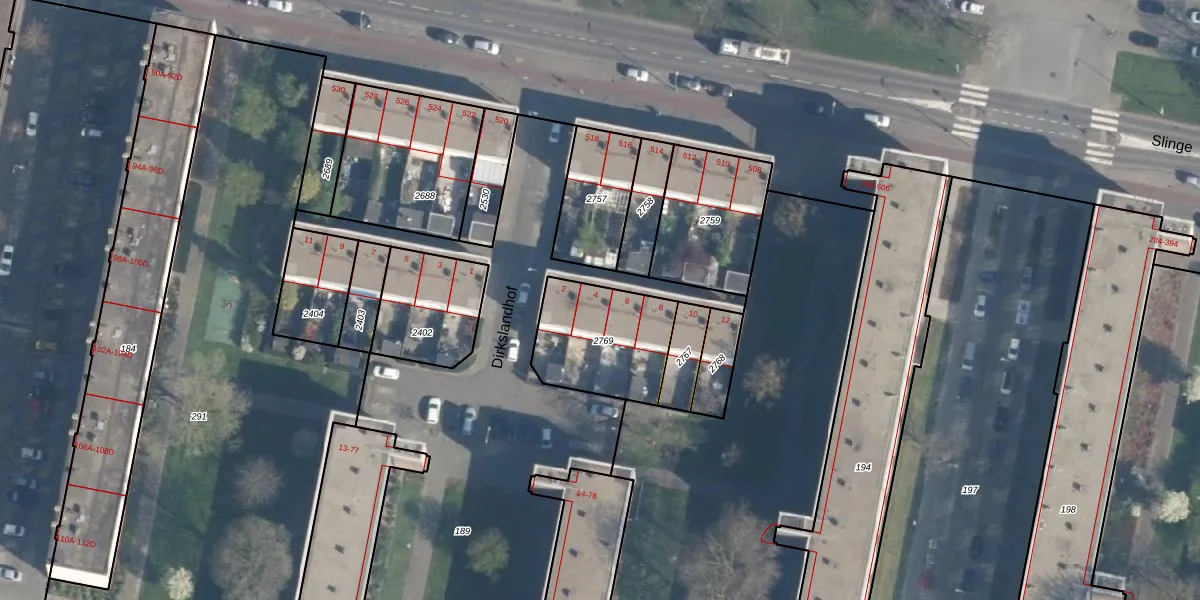 Dirkslandhof 4 is gelegen op kadastraal perceel CLS00L2769. Deze kadastrale aanduiding is uniek en wordt gebruikt door het Kadaster om eigendomsrechten en andere zakelijke rechten vast te leggen. Het perceel maakt onderdeel uit van de kadastrale gemeente Charlois.