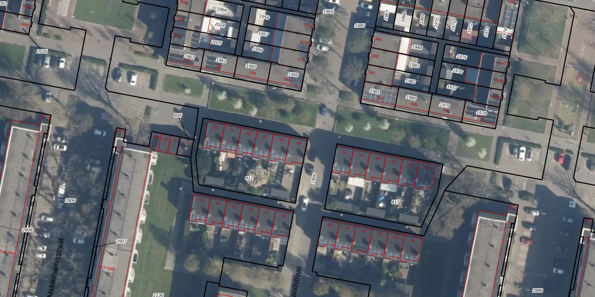 Het perceel waarop Dirkslandstraat 43 staat heeft een oppervlakte van 771 m². Dit is een groot perceel. De perceeloppervlakte wordt geregistreerd door het Kadaster. Gedetailleerde informatie over de maten van dit perceel kunt u vinden in het rapport Kadastrale kaart met maatvoering van Dirkslandstraat 43.