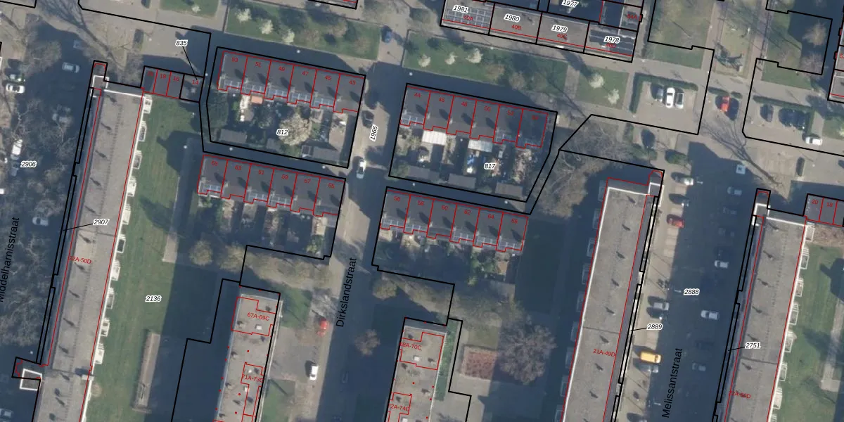 Het perceel waarop Dirkslandstraat 58 staat heeft een oppervlakte van 5289 m². Dit is een zeer groot perceel. De perceeloppervlakte wordt geregistreerd door het Kadaster. Gedetailleerde informatie over de maten van dit perceel kunt u vinden in het rapport Kadastrale kaart met maatvoering van Dirkslandstraat 58.