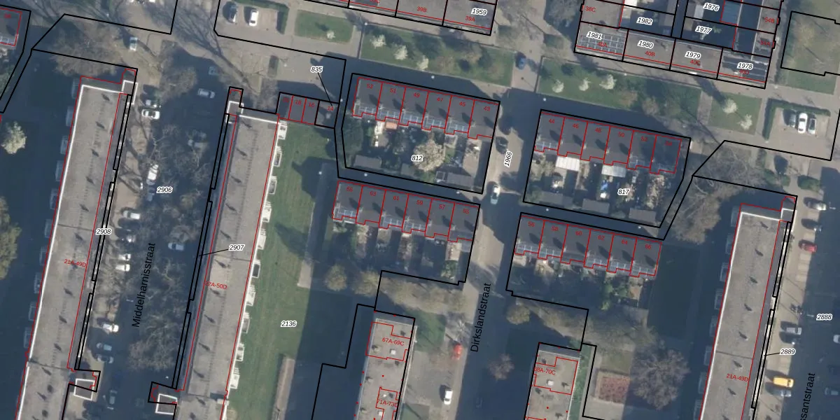 Het perceel waarop Dirkslandstraat 59 staat heeft een oppervlakte van 4457 m². Dit is een zeer groot perceel. De perceeloppervlakte wordt geregistreerd door het Kadaster. Gedetailleerde informatie over de maten van dit perceel kunt u vinden in het rapport Kadastrale kaart met maatvoering van Dirkslandstraat 59.