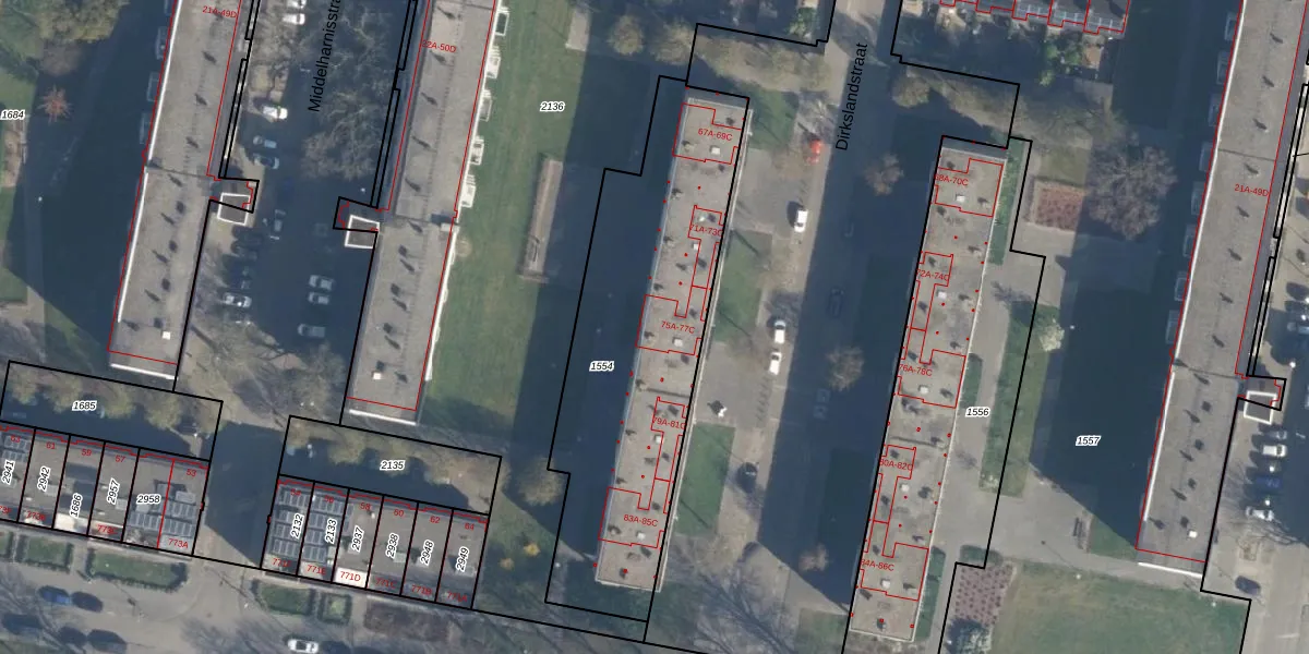 Dirkslandstraat 77-B is gelegen op kadastraal perceel CLS00L1554. Deze kadastrale aanduiding is uniek en wordt gebruikt door het Kadaster om eigendomsrechten en andere zakelijke rechten vast te leggen. Het perceel maakt onderdeel uit van de kadastrale gemeente Charlois.