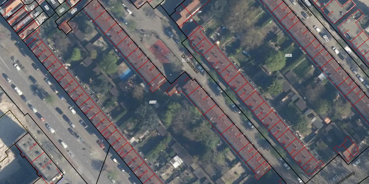 Het perceel waarop het adres ligt is CLS00-F-2177. De afkorting 'CLS00' staat voor kadastrale gemeente Charlois. De oppervlakte van het perceel is 8170 m². Dat is groter dan gemiddeld in Charlois, waar de gemiddelde perceeloppervlakte op 1147,24 m² ligt. Het kleinste perceel in de kadastrale gemeente is 0 m² groot. De grootste perceeloppervlakte is 1,09 km². Op het perceel liggen in totaal 99 adressen. De huidige grenzen van het perceel zijn digitaal in de Basisregistratie Kadaster (BRK) geregistreerd op 24-04-2003.