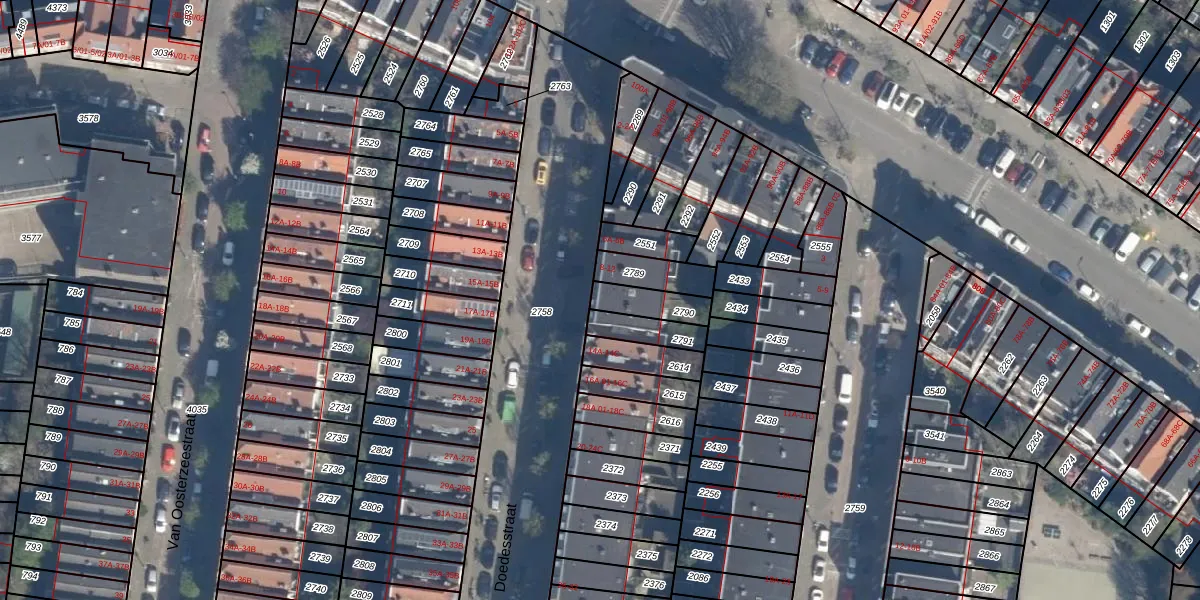 Het perceel waarop Doedesstraat 10-A staat heeft een oppervlakte van 95 m². Dit is een klein perceel. De perceeloppervlakte wordt geregistreerd door het Kadaster. Gedetailleerde informatie over de maten van dit perceel kunt u vinden in het rapport Kadastrale kaart met maatvoering van Doedesstraat 10-A.