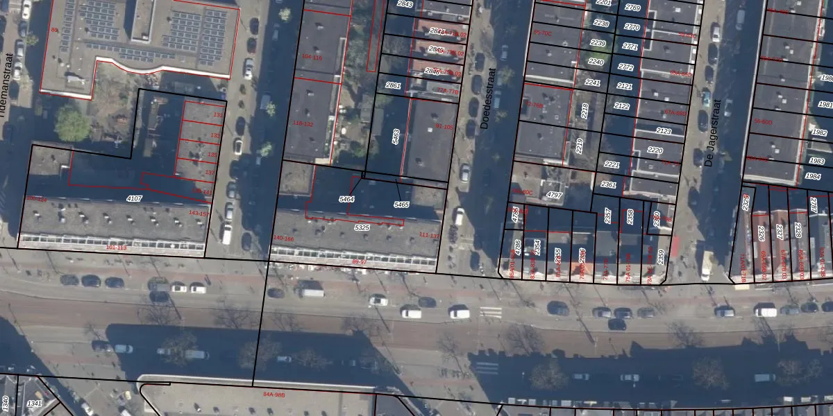 Doedesstraat 115 is gelegen op kadastraal perceel DHV00C5325. Deze kadastrale aanduiding is uniek en wordt gebruikt door het Kadaster om eigendomsrechten en andere zakelijke rechten vast te leggen. Het perceel maakt onderdeel uit van de kadastrale gemeente Delfshaven.