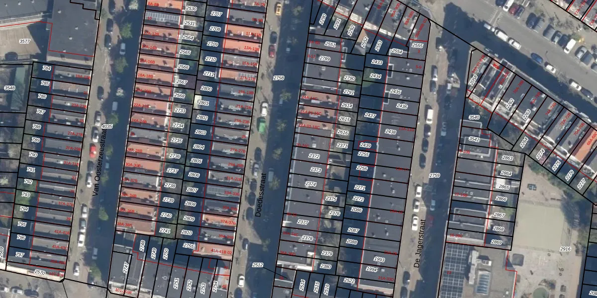 Het perceel waarop Doedesstraat 20 staat heeft een oppervlakte van 91 m². Dit is een klein perceel. De perceeloppervlakte wordt geregistreerd door het Kadaster. Gedetailleerde informatie over de maten van dit perceel kunt u vinden in het rapport Kadastrale kaart met maatvoering van Doedesstraat 20.