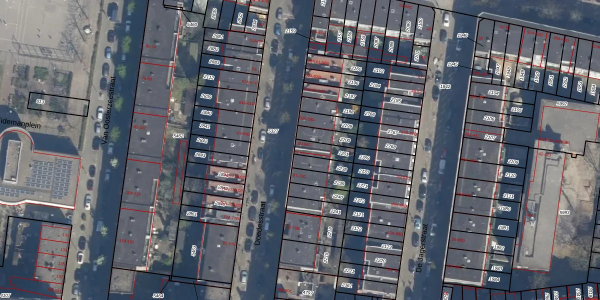 Het perceel waarop Doedesstraat 64-B staat heeft een oppervlakte van 96 m². Dit is een klein perceel. De perceeloppervlakte wordt geregistreerd door het Kadaster. Gedetailleerde informatie over de maten van dit perceel kunt u vinden in het rapport Kadastrale kaart met maatvoering van Doedesstraat 64-B.