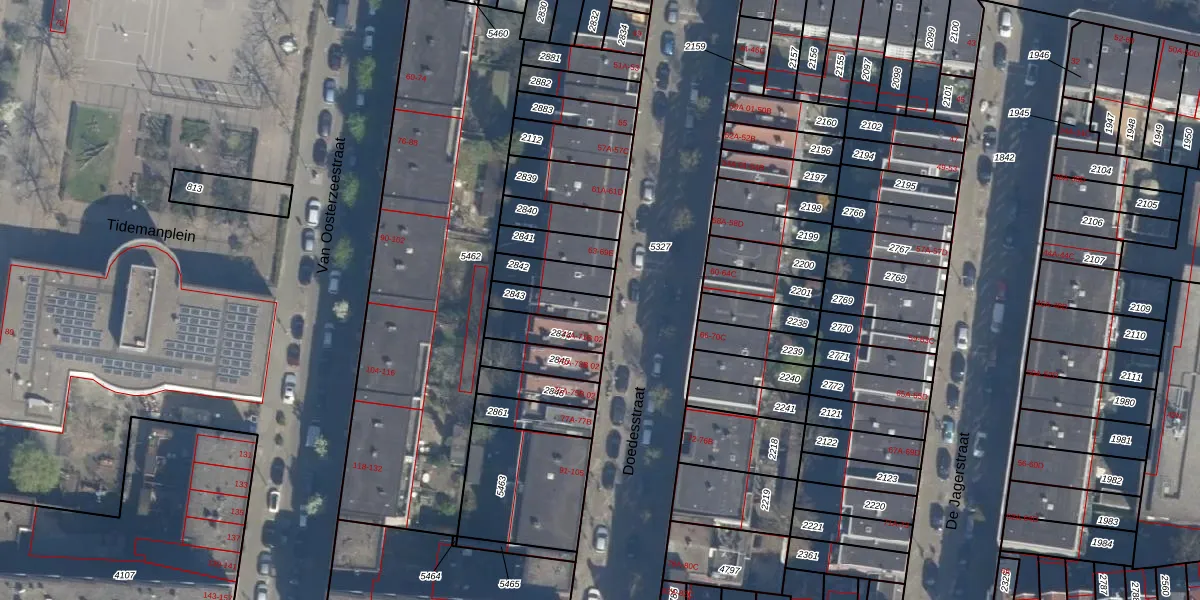 Het perceel waarop Doedesstraat 69-E staat heeft een oppervlakte van 96 m². Dit is een klein perceel. De perceeloppervlakte wordt geregistreerd door het Kadaster. Gedetailleerde informatie over de maten van dit perceel kunt u vinden in het rapport Kadastrale kaart met maatvoering van Doedesstraat 69-E.