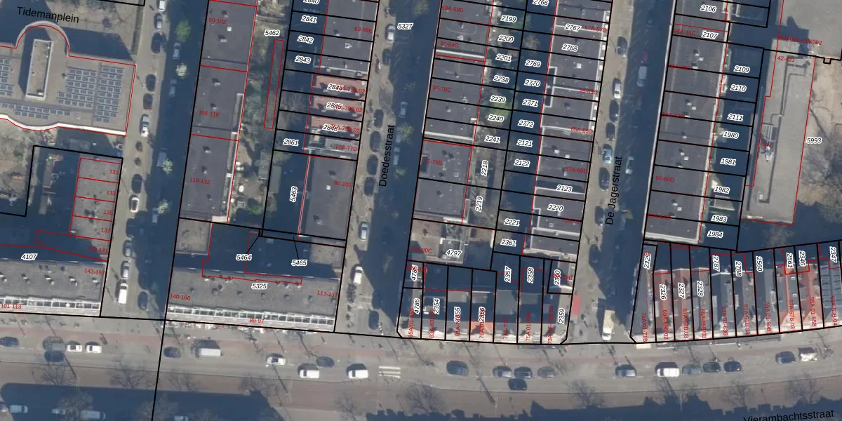 Het perceel waarop Doedesstraat 76-B staat heeft een oppervlakte van 192 m². Dit is een middelgroot perceel. De perceeloppervlakte wordt geregistreerd door het Kadaster. Gedetailleerde informatie over de maten van dit perceel kunt u vinden in het rapport Kadastrale kaart met maatvoering van Doedesstraat 76-B.