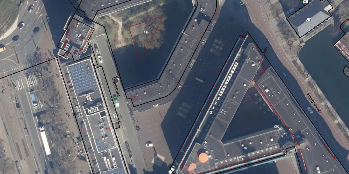 Het perceel waarop Doelstraat 13 staat heeft een oppervlakte van 1770 m². Dit is een zeer groot perceel. De perceeloppervlakte wordt geregistreerd door het Kadaster. Gedetailleerde informatie over de maten van dit perceel kunt u vinden in het rapport Kadastrale kaart met maatvoering van Doelstraat 13.