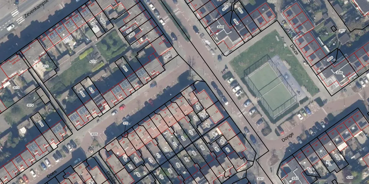 Gebruik de zoekbalk of klik op een perceel voor informatie over de adressen binnen dit perceel.