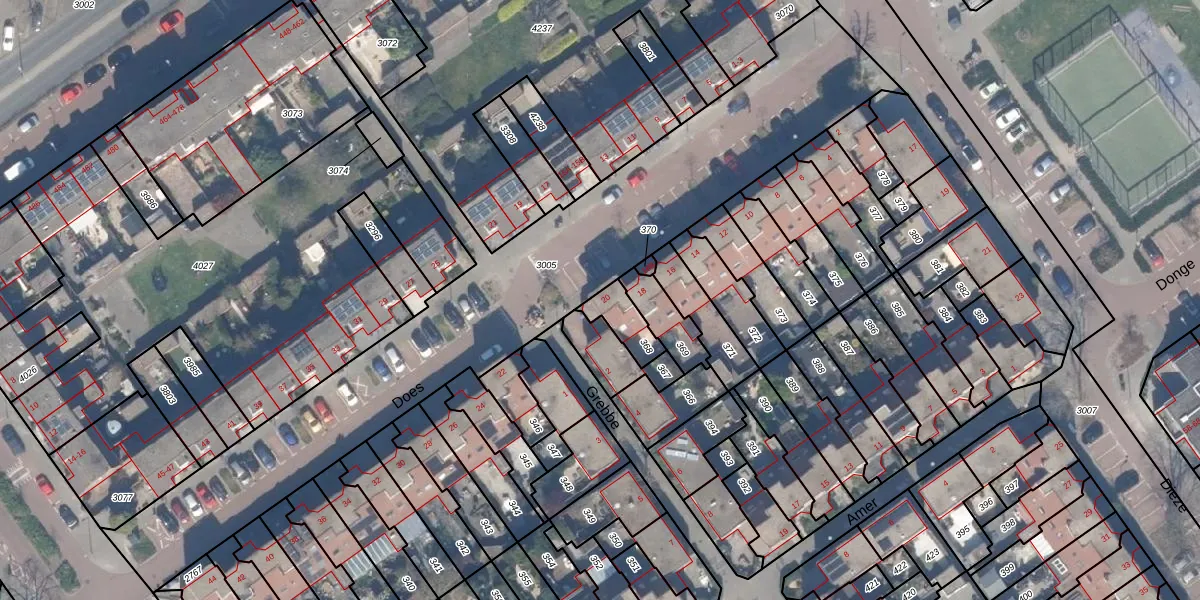 Gebruik de zoekbalk of klik op een perceel voor informatie over de adressen binnen dit perceel.