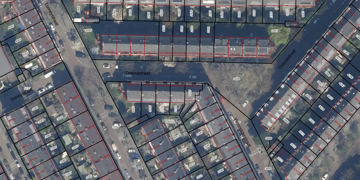 Doezastraat 30-A is gelegen op kadastraal perceel RTD10Z2732. Deze kadastrale aanduiding is uniek en wordt gebruikt door het Kadaster om eigendomsrechten en andere zakelijke rechten vast te leggen. Het perceel maakt onderdeel uit van de kadastrale gemeente Rotterdam.