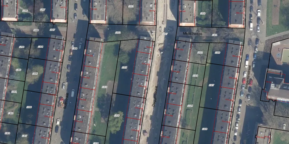 Doggerstraat 13-A is gelegen op kadastraal perceel RTD10AA1315. Deze kadastrale aanduiding is uniek en wordt gebruikt door het Kadaster om eigendomsrechten en andere zakelijke rechten vast te leggen. Het perceel maakt onderdeel uit van de kadastrale gemeente Rotterdam.