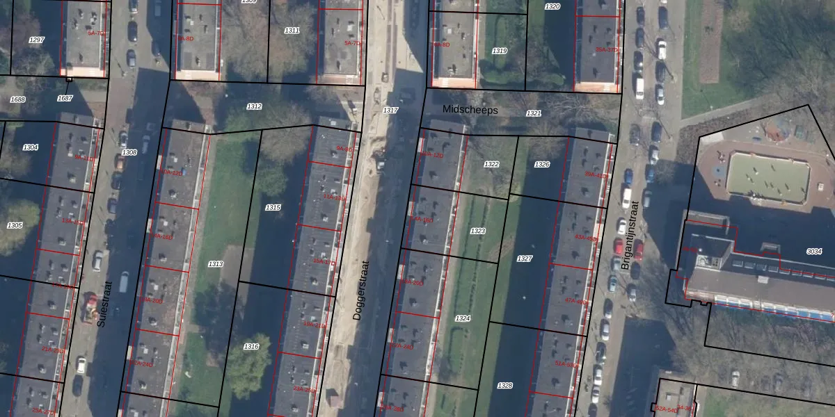 Het perceel waarop Doggerstraat 14-B staat heeft een oppervlakte van 365 m². Dit is een groot perceel. De perceeloppervlakte wordt geregistreerd door het Kadaster. Gedetailleerde informatie over de maten van dit perceel kunt u vinden in het rapport Kadastrale kaart met maatvoering van Doggerstraat 14-B.