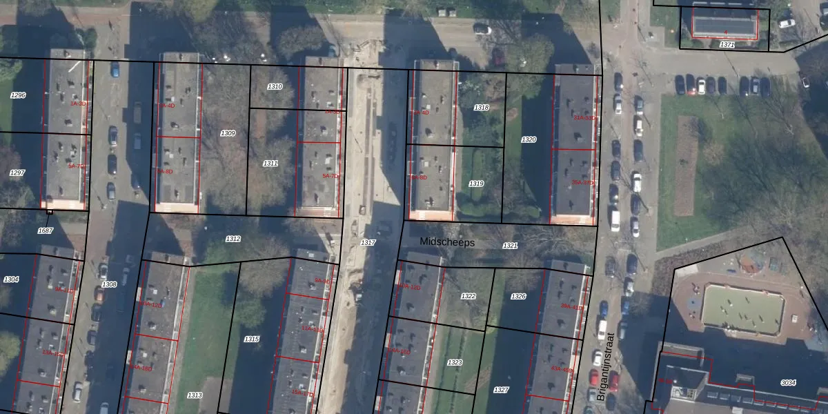 Het perceel waarop het adres ligt is RTD10-AA-1319. De afkorting 'RTD10' staat voor kadastrale gemeente Rotterdam. Het perceel is kleiner dan gemiddeld in Rotterdam. Het perceel is 427 m² groot, terwijl het gemiddelde ligt op 1601,97 m². Het grootste perceel in de kadastrale gemeente is 30,3 ha. Het kleinste perceel heeft een oppervlakte van 0 m². Er zijn 8 adressen aanwezig op het perceel. De laatste wijziging in het de Basisregistratie Kadaster (BRK) was op 27-01-2003.
