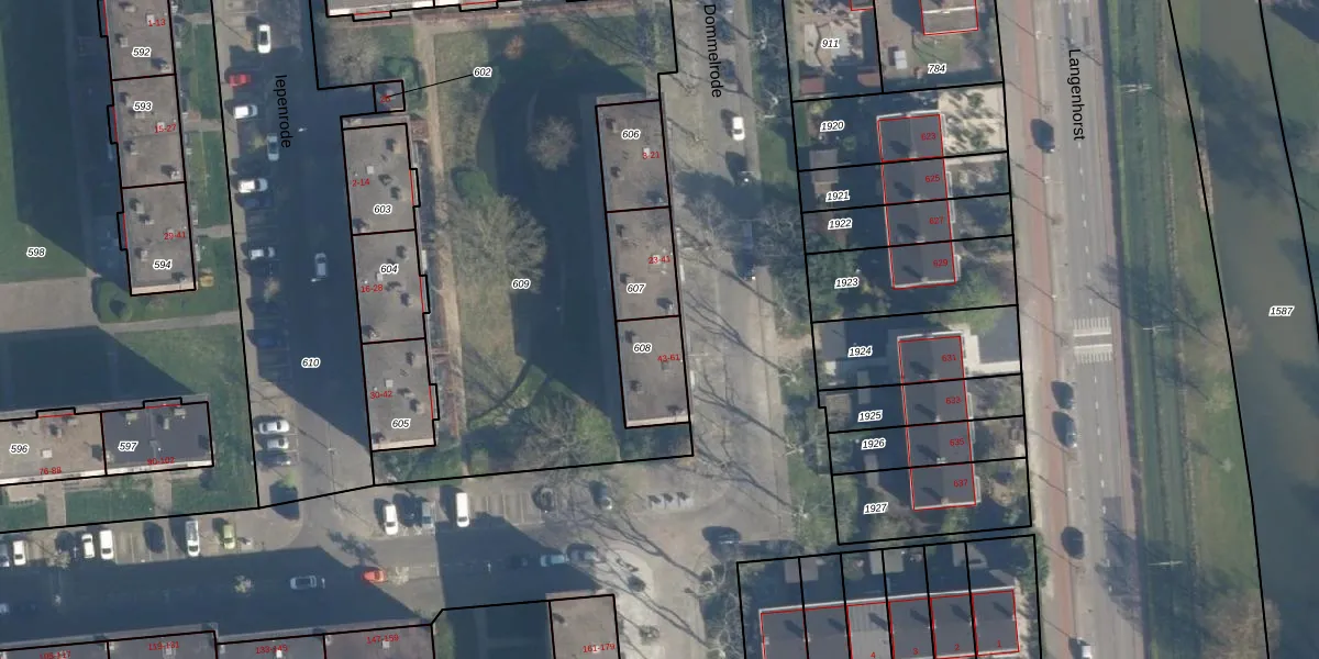 Dommelrode 43 is gelegen op kadastraal perceel CLS00K608. Deze kadastrale aanduiding is uniek en wordt gebruikt door het Kadaster om eigendomsrechten en andere zakelijke rechten vast te leggen. Het perceel maakt onderdeel uit van de kadastrale gemeente Charlois.